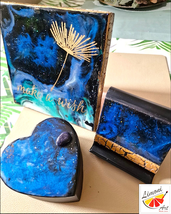 Serie blue dream Stifthalter, Handyhalter und Bild auf Holz